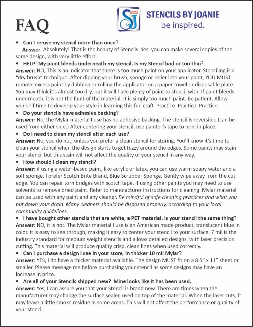Inspire the artist in you with this precision laser-cut quality 7 mil Mylar sign stencil that allows you to use your favorite medium on most flat surfaces. 7 mil Mylar is the industry standard for medium-weight sheeting that will produce clean and crisp edges every time, when used properly. Stenciling is a “dry brush” technique. If paint seeps underneath your stencil, it is not the material - it is an indication that the applicator has too much paint. 7 mil Mylar is not a thick plastic template and not recommended for tracing with markers, engraving, sand-blasting, wood burning or embossing. The stencil can be traced with a fine lead pencil if you desire an outline image first and then fill in with paints, cremes or markers. Express your personal style and paint a sign, decorate hand-made cards, stencil a t-shirt for a friend, give new purpose to inexpensive items (glass, wood, bags, canvas, fabric, furniture). When you purchase this stencil, we can work together and create something beautiful for your home today.