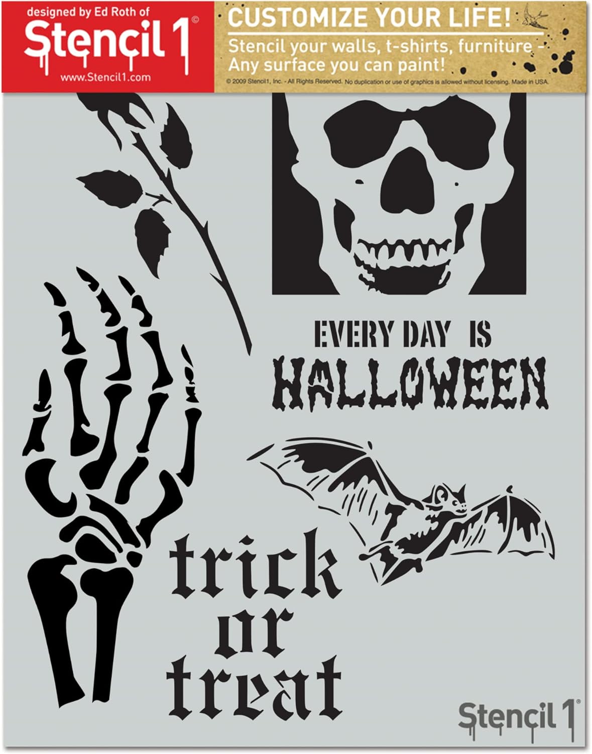 EXTENSIVE QUALITY MATERIALS: This Skull Profile Stencil is made with premium quality, highly durable materials, and carefully designed with high attention to details, enjoy a smooth painting and writing experience. Our painting stencils work on a wide variety of surfaces being ideal for window, wall, door, mirror, glass, fabric, wood, and rock. 🇺🇸MADE IN USA EASILY USEABLE: Whether you’re looking to add Skull Profile stencil to your journal pages or school notebooks, or you want to surprise your loved ones with a lovely handmade present, these stencils are a perfect choice. Use them with markers, color sprays, paints, and any other drawing or painting accessories. INSPIRED DESIGN SKULL STYLE: Stenciling is the secret to expressing your personal artistic style in the colors & mediums you love. Elevate your creative potential with stencils! Layer, emboss, revitalize, remodel, & explore a whole new world of artistic expression! Use them with markers, color sprays, paints, and any other drawing or painting accessories. BEST HALLOWEEN & PUMPKIN DECORATING: Unique design skull style, improve your production efficiency, and enjoy the fun of it, there must be what you want. Elevate your creative potential with stencils! Layer, emboss, revitalize, remodel, & explore a whole new world of artistic expression! STENCIL1 GREAT CHOICE: All stencil designs are original artwork of Ed Roth and are copyrighted. You can not create items for resale using the stencils without written permission and licensing agreement from Stencil1. Our premium stencils are the perfect way to treat a special person in your life or treat yourself because these are easy to wash and reuse.