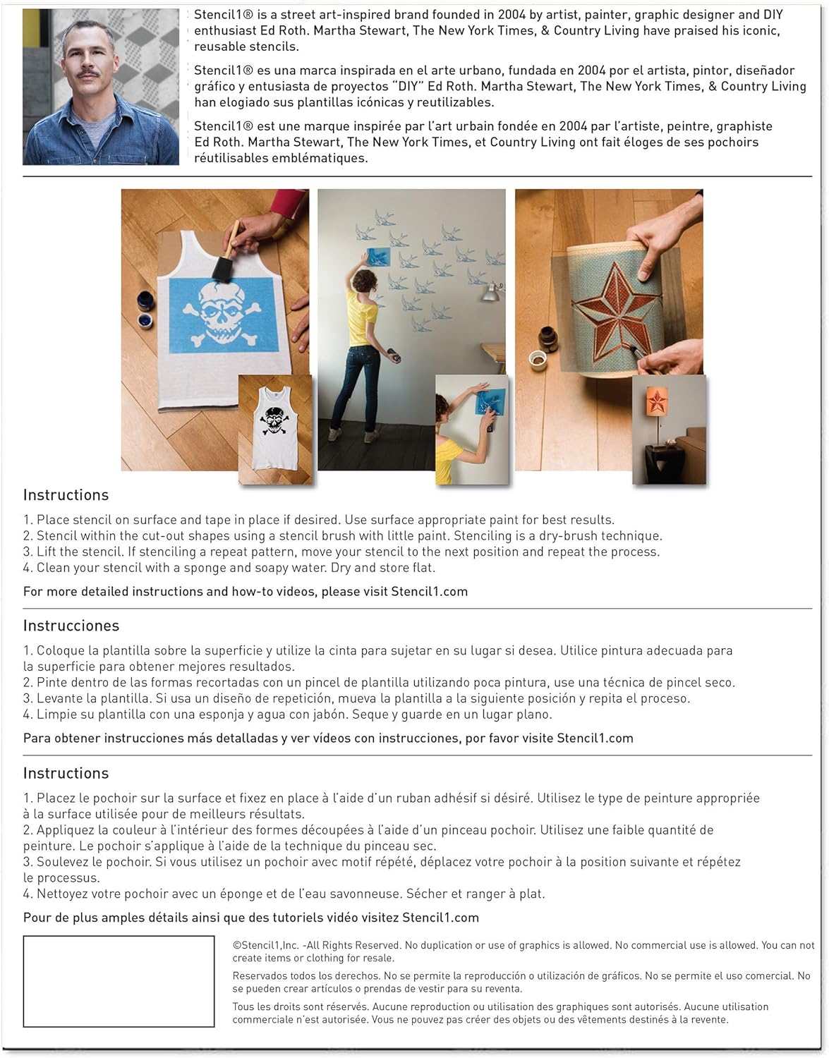 STENCIL1 OWL STENCIL: This 8.5" x 11" Owl stencil is ideal for art projects, t-shirts, and more. Made from mylar, easy to wash and reuse. Use with Stencil 1 sprays, sharpies, spray paints, and more. Urban, graffiti-inspired designs perfect for home decor, arts and crafts, and fashion. 🇺🇸MADE IN USA BEAUTIFUL APPEARANCE: Our craft stencils are perfect for all types of DIY crafts and projects. Common uses include wall decorations, furniture, wood Halloween, and Pumpkin Decorating Items. Make your own unique artwork instead of shopping pricey standard pieces. Beautiful art to add to your home decoration. INSPIRED DESIGN OWL STYLE: Stenciling is the secret to expressing your personal artistic style in the colors & mediums you love. Elevate your creative potential with stencils! Layer, emboss, revitalize, remodel, & explore a whole new world of artistic expression! Use them with markers, color sprays, paints, and any other drawing or painting accessories. BEST HALLOWEEN & PUMPKIN DECORATING: Unique design owl style, improve your production efficiency, and enjoy the fun of it, there must be what you want. Elevate your creative potential with stencils! Layer, emboss, revitalize, remodel, & explore a whole new world of artistic expression! STENCIL1 GREAT CHOICE: All stencil designs are original artwork of Ed Roth and are copyrighted. You can not create items for resale using the stencils without written permission and licensing agreement from Stencil1. Our premium stencils are the perfect way to treat a special person in your life or treat yourself because these are easy to wash and reuse.