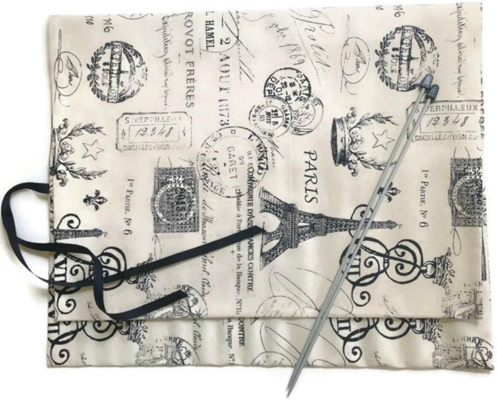 15 Pockets of Graduated Sizes Holds 14 and 10-Inch Straight Single Point Needles Black French Toile with Grosgrain Ribbon Closure Artisan Made Needles are not included