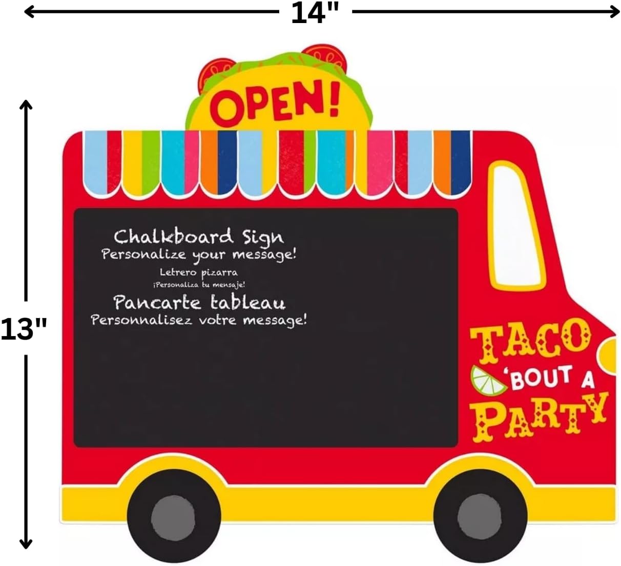 Taco Truck Chalkboard MDF Easel Sign - 13 x 14 (Pack of 1) - Eye-catching & Customizable Party Prop, Perfect for Parties & Events