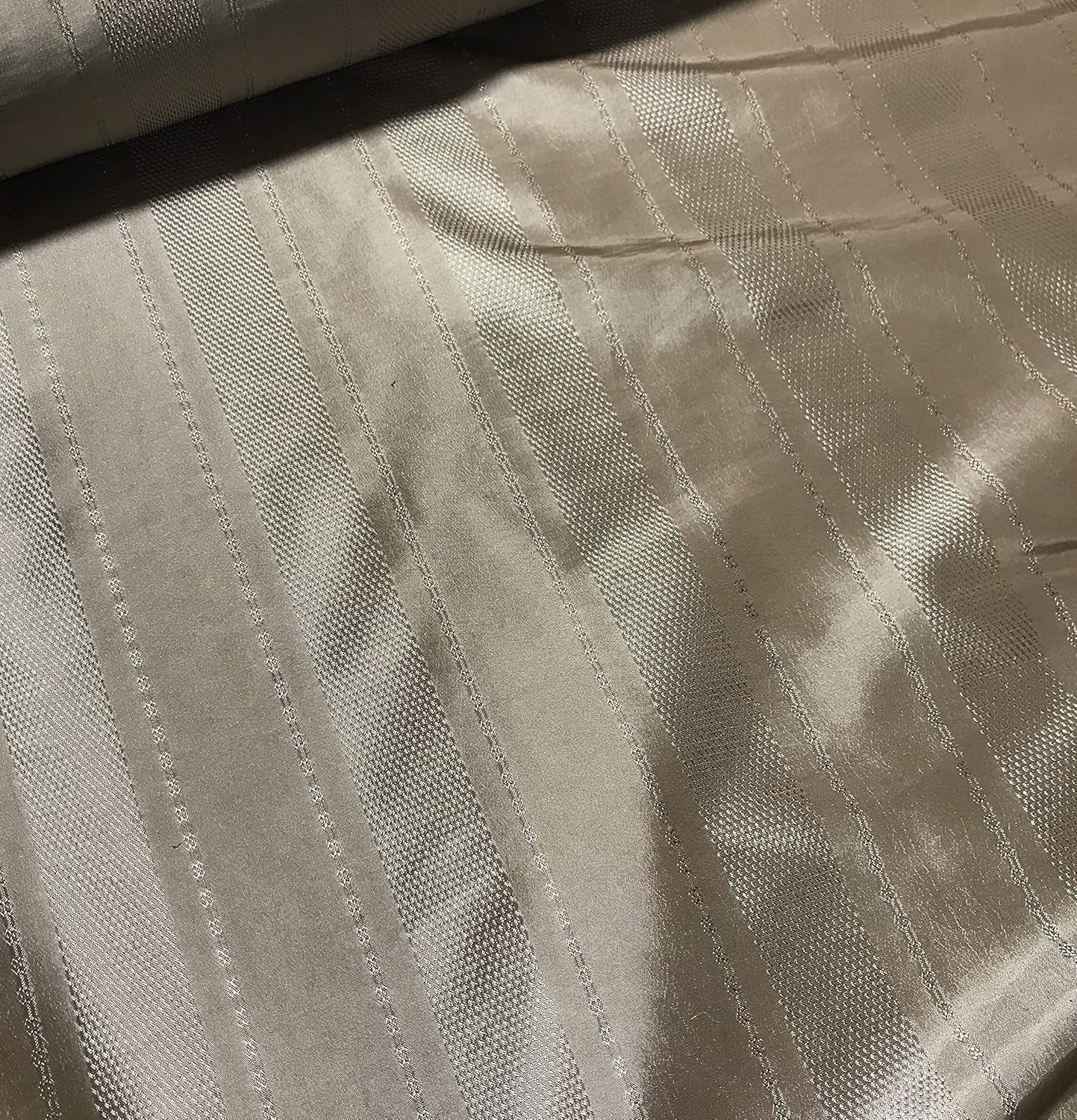 Taupe Stripe - Faux Silk Taffeta FabricPolyester fabric. Please feel free to reach out if you have any questions!