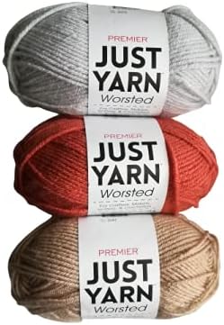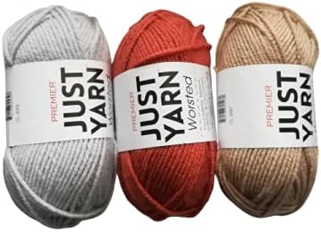 131 yards, 60 g each 100 % acrylic Three colors: Terra Cotta, Mist, Parchment Great for crochet or knitting projects for the fall Makes a great seasonal gift Gauge 4 Medium
