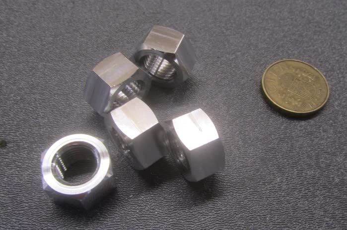 6061 Aluminum Hex Nuts RH 1/2"-20 Thread x 3/4" W x 7/16" H