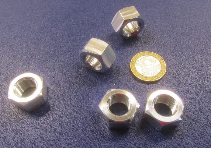 6061 Aluminum Hex Nuts RH 1/2"-20 Thread x 3/4" W x 7/16" H 5 Pcs