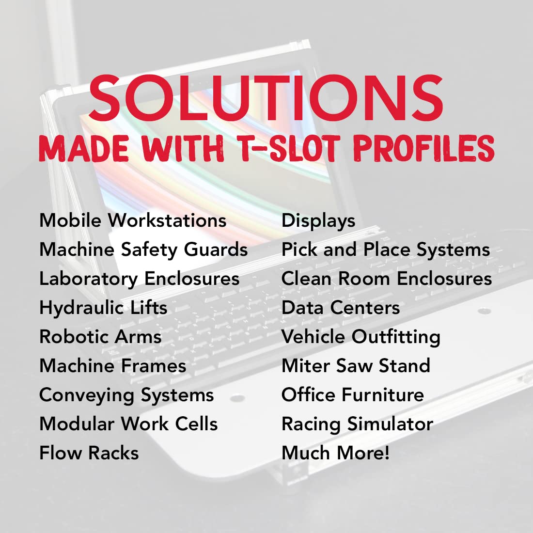 20 Series T-Slotted Aluminum Extrusion with Six Open T-Slots Compatible with all 20 Series Fasteners and Accessories Six open available T-slots for mounting accessories Great for machine guards, sound enclosures, work benches, panel mount racks, displays, 3D CNC framing, 3D Printing framing, or any project that requires a clean, aesthetic look Made out of 6105-T5 aluminum (or equivalent) with a clear anodized finish
