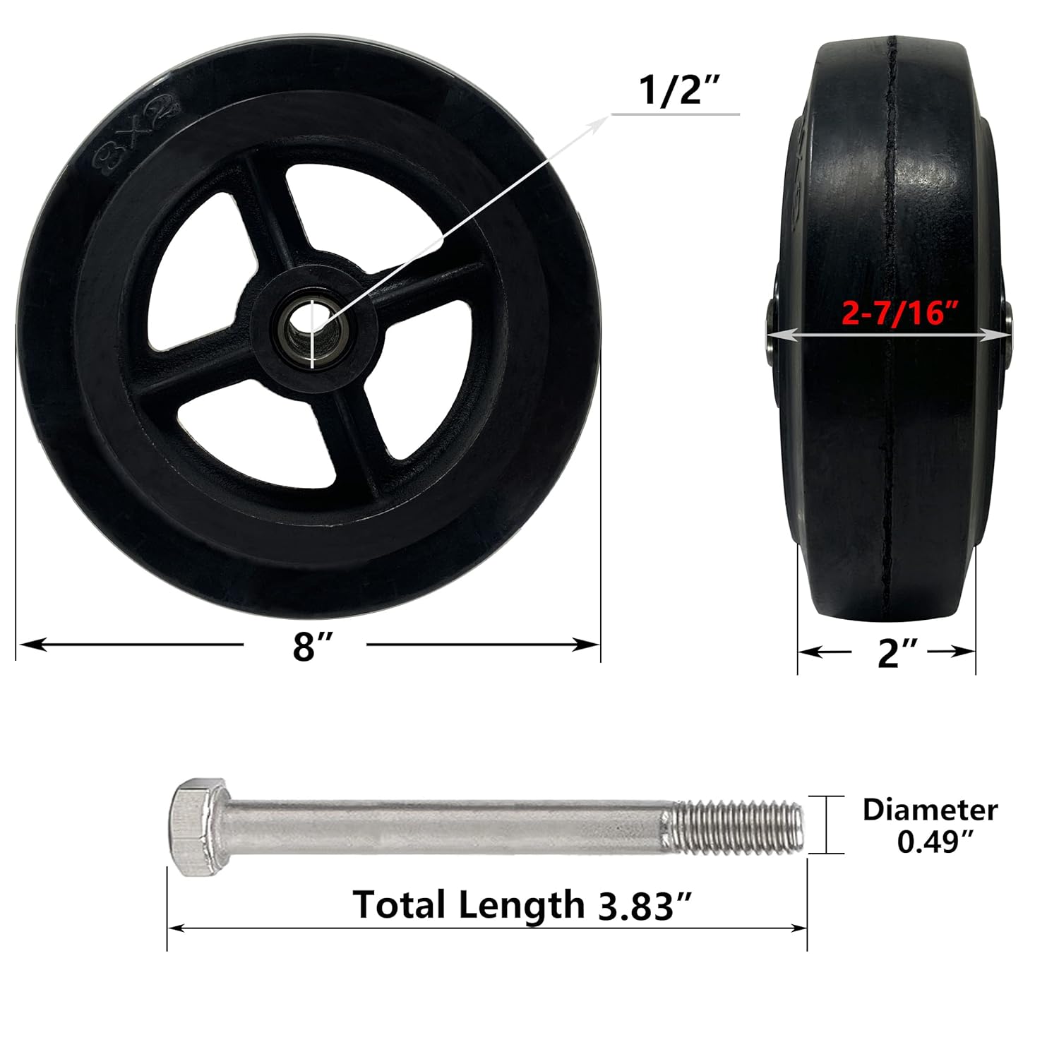 【HEAVY-DUTY】 HANDSAMM Casters wheel are made of High-quality Rubber with Cast Iron Core .The Heavy Duty Caster Wheel have strong abrasion resistance, are not easy to rust, and have strong shock absorption and buffering performance, which increases the service life. 【CASTER WHEEL SIZE】: CASTER WHEEL SIZE diameter: 8 inches, width: 2 inches, Hub Length: 2-7/16,with ¾” roller bearing, ½ ID wrench bushing.One 8 inch wheel can support load 650Lb, strong load-bearing capacity, so you can buy and use with confidence. 【High Resistance】Industrial caster wheels have soft rubber tires molded onto iron centers. Soft rubber provides more desirable operating characteristics than any other wheel material. It is quiet, absorbs shock .The Rubber Caster wheel is a very attractive all-purpose wheel which is versatile and stylish. 【Widely Use】These are fantastic wheels for many applications like dollies, platform trucks, shop floors, warehouse carts, U-Boat cart and freight terminals .Also High-quality Caster wheel can drastically help you improve your Heavy Duty Caster rolling performance in the right environments. 【QUALITY ASSURANCE】: First of all, thank you for choosing HANDSAMM’S heavy duty casters wheel. If you have any questions or quality problems about Casters wheel, please contact us in time, we will solve the problem for you as soon as possible.