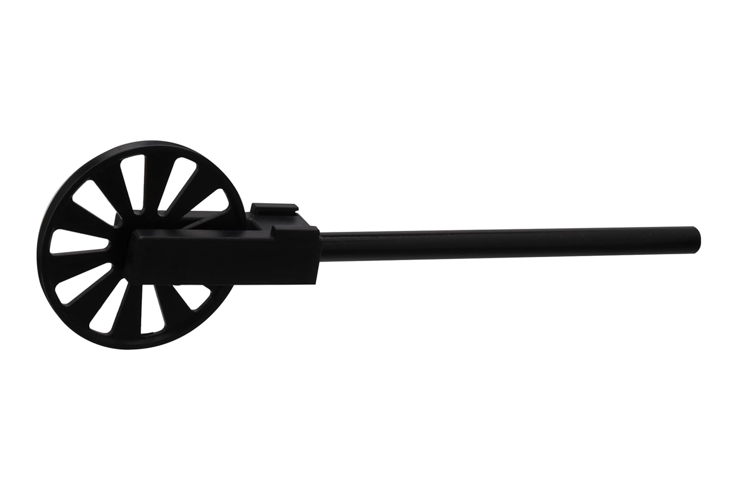 9" High Speed Low Friction Spoke Pulley Pulley is mounted on a free running ball bearings with minimum frication. Mounted on a removable rod with threads of 5.5" length x 3/8" diameter Wheel has a diameter of 2.5", thickness of 1/8", and has spokes Idea for use with photogate sensors 9" total length