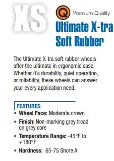 WHEEL DESCRIPTION - XS is the ultimate X-tra soft rubber wheels offer the ultimate in ergonomic ease. Whether its durablity, quiet operation, rollability, these wheels can anser your every application need. X-tra soft wheels provide the ultimate in floor protection, lasting durability, shock absorbtion, debris rejection (including metal shavings), and are non-marking. Temperature range is -45F to +180F, Hardness 70-85 Shore A CASTER RIG DESCRIPTION - Albion 02 Series caster rigs are heavily embossed, formed steel to extend caster life under rugged conditions. Swivel section is heat treated double ball bearing raceways to resist wear and improve maneuverability. Axle is 3/8" diameter hollow axle with lock nut. Finish is zinc plated to resist rust and corrosion. SPECIFICATIONS - Bolt hole pattern is 1-3/4" x 2-13/16" to 3-1/16", overall top plate is 2 1/2" x 3 5/8", overall height 4 11/16", 250 lbs load capacity, swivel lead 1 1/4" INDUSTRIES AND APPLICATIONS - Typical applications include hotel equipment, institutional equipment, food service racks anc ases, stock carts, and laundry trucks. MORE INFORMATION - Don’t see the caster you are looking for ? Call us or message us by clicking the Access Casters link under Add to Cart button.