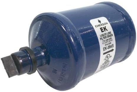 Rheem Emerson 83-EK-084S Liquid Line 1/2" Air Conditioner Filter Dryer (Uni-directional) (2-each) The purpose of a liquid line filter-drier is to capture and contain harmful contaminants in order to prevent damage to system components and prolong equipment life. Harmful contaminants removed by filter-driers include moisture, acid, wax and particulate matter. Product Features Solid core, activated alumina with molecular sieve Corrosion resistant epoxy powder paint finish Suitable for R-22 and R-410A, 680 psig maximum working pressure Product Technical Data Brand: Emerson Industry Code: 084S Location (Liquid / Suction): Liquid Flow: Uni-directional Working Pressure (psig): 680 Refrigerant Type: HFC - R-410A Refrigerant Type: HCFC - R-22 Core Type: Beaded Desiccant: Activated alumina with molecular sieve Connection Size (in.): 1/2 Connection Type: Sweat ODF Overall Length (in.): 5-3/8 Body Length (in.): 3-13/16 Body Diameter (in.): 2-5/8 Capacity (Cubic in.): 8 R-22 ARI Flow Capacity @ 1 psi Drop (Tons): 7.7 R-410A ARI Flow Capacity @ 1 psi Drop (Tons): 7.7 Water Capacity R-22 Temp 75 (Drops @ 60ppm): 235 Water Capacity R-22 Temp 125 (Drops @ 60ppm): 200 Water Capacity R-410A Temp 75 (Drops @ 50ppm): 159 Water Capacity R-410A Temp 125 (Drops @ 50ppm): 118