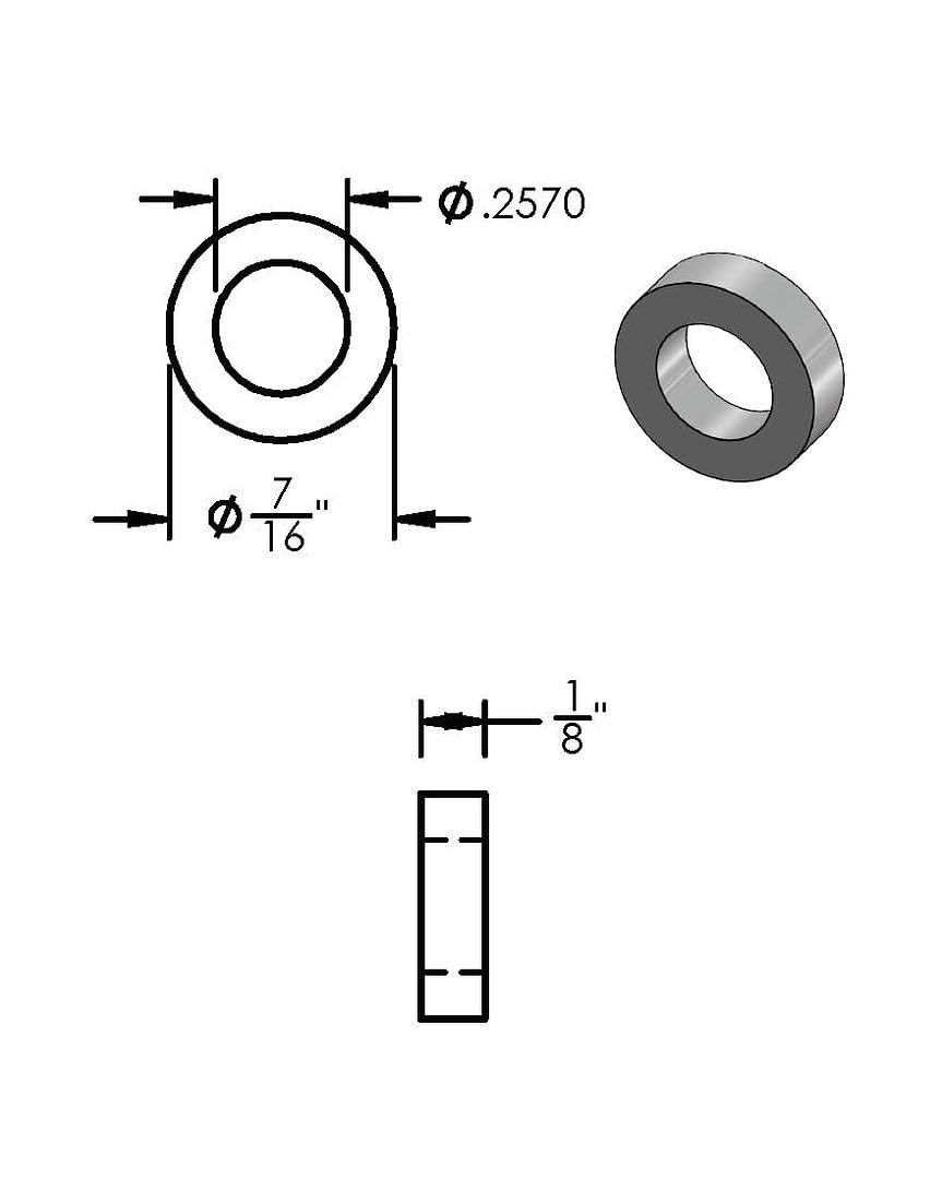 Outside diameter: 7/16"/11.11mm Inside diameter: 1/4"/6.52mm (fits 1/4" or M6 bolts) Length: Varies-Choose Length Shape: Round Material Type: T-6061 Aluminum with tumbled aluminum finish