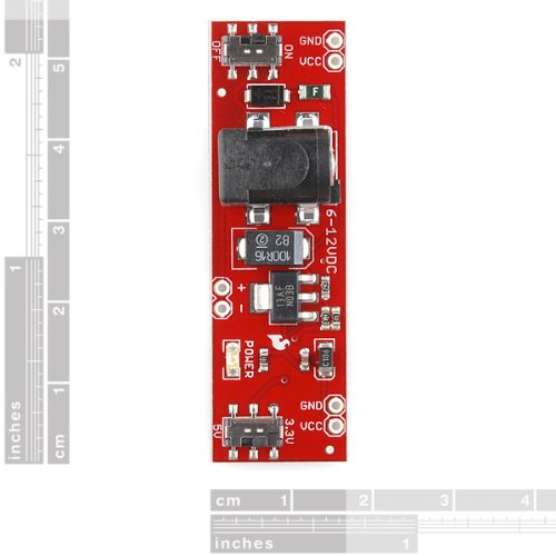 6-12V input voltage via barrel jack or 2-pin header 3.3V or 5V regulated output voltage, with On-Off switch Output voltage select switch, Power Status LED PTC fuse protected power 5.5x2.1mm center positive barrel jack