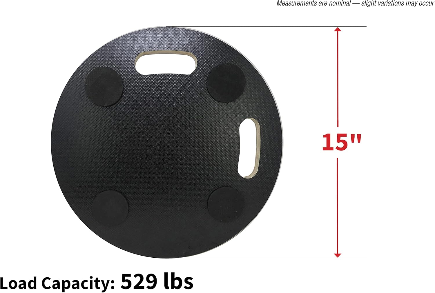 Platform: 14-15/16" diameter x 4-1/2" Round plywood dolly with non-slip top coat 3" Polyurethane casters 529-lb Load Capacity