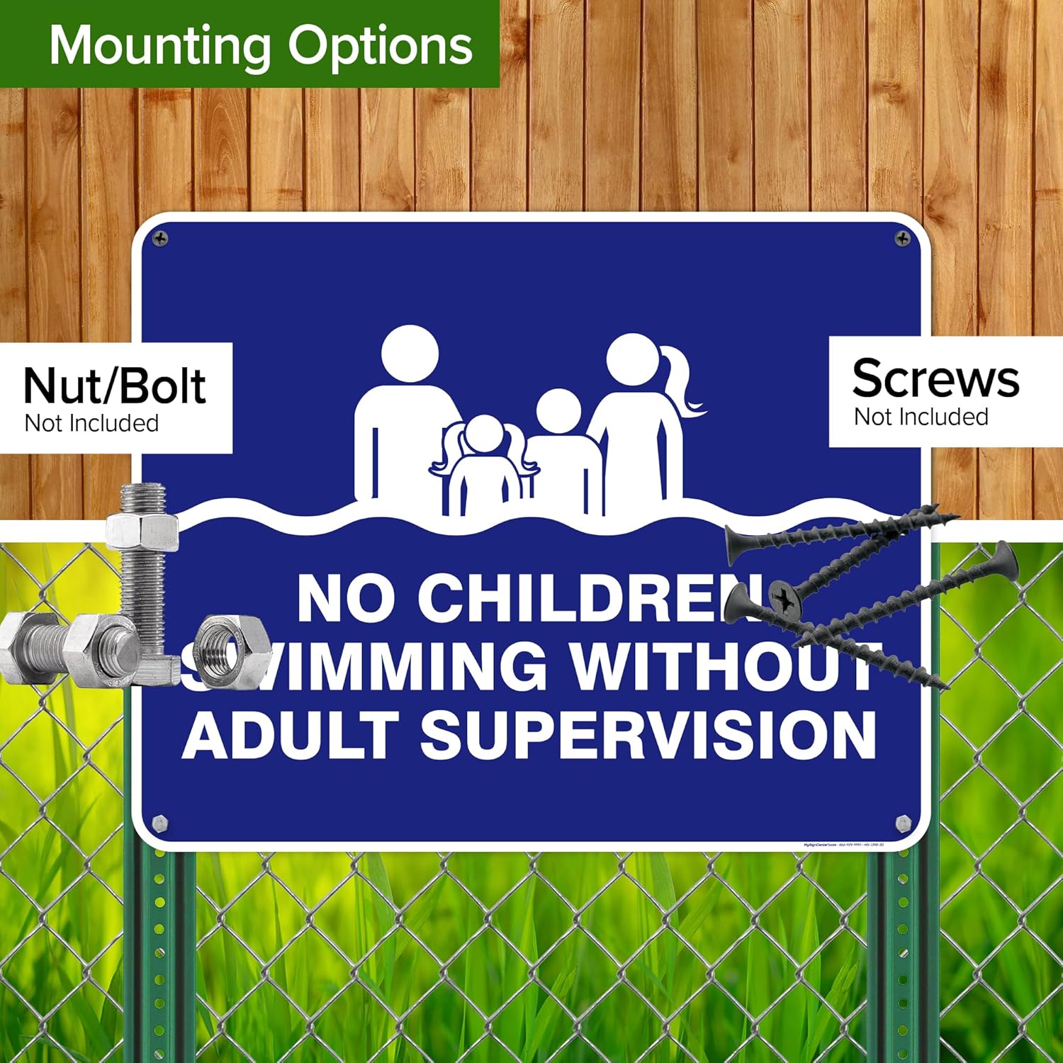 No Children Swiming Without Adult Supevision Sign, 24x30 Inches, 55 mil thick HDPE (high density polyethylene), Made in USA by My Sign Center