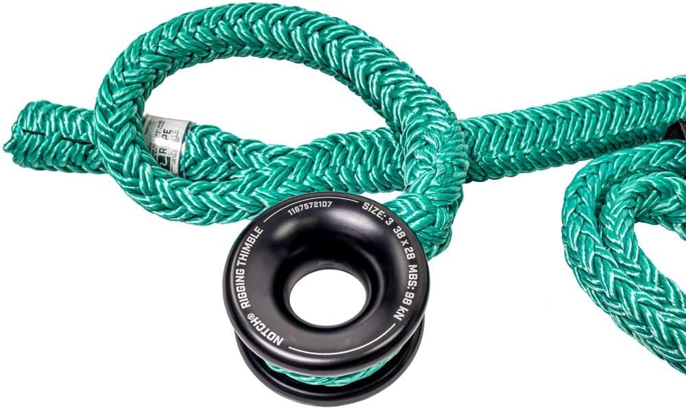 A Notch Rigging Thimble #3 X-Large (38mm x 28mm) spliced onto a 3/4-inch 12 strand high-strength, low-stretch 3 ft. Tenex rope loop from Samson The X-Rigging ring 36” loop can be added to rigging systems in any number of ways to accomplish the goal of safe, efficient rigging operations X-Rigging rings are made with milled aluminum, then hard-coat anodized, and then polished–making them strong, durable and low friction MELTING POINT: 480 degrees Spliced in house by the experts at Rope Logic