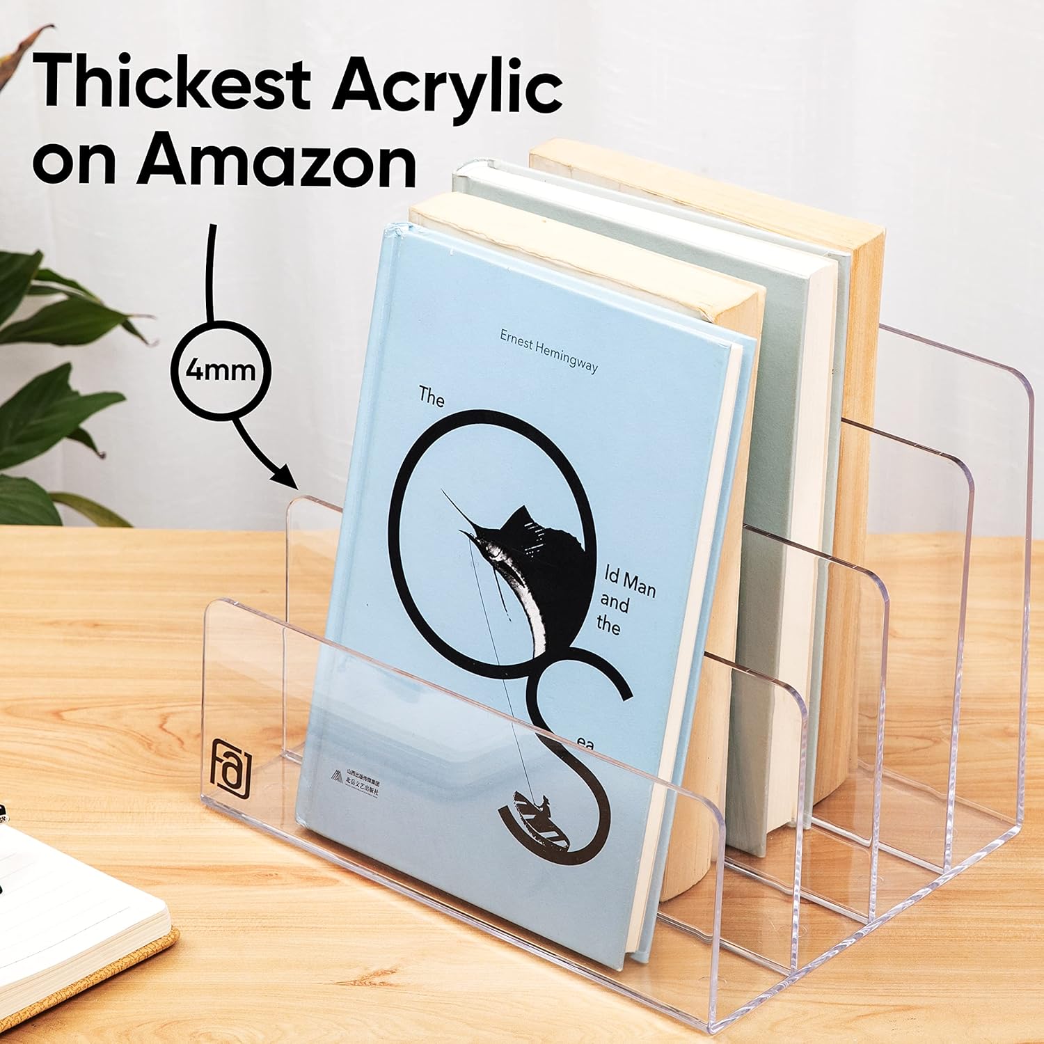 DECLUTTER and ORGANIZE - The crystal clear, modern design for FAJ Acrylic Desktop File helps to organize your space while looking stylish. Looks great on your desk as a desktop holder for your notebooks, papers, books, documents, file folders, electronics, accessories, envelopes, mail, purses and clutch, makeup eyeshadow platte, magazines and so much more DURABLE and BEAUTIFUL - Designed for your convenience and lifetime usage. Constructed from a one piece mold construction unlike others glued that tend to break. High quality, thick crystalline acrylic (4mm) is shatterproof and long-lasting. EXTRA CARE PACKAGING - Arrives to you with nested foam packaging for extra protection inside the box so you will receive your beautiful organizer perfectly safe and damage free. CRYSTAL CLEAR and CONVENIENT - Graduated height shelves help organize all your different size items. Constructed using our premium acrylic that is perfectly clear and glass like to help you see easily what you need at a glance while looking stylish on your desk. Exterior dimensions: 9"x7"x7" LIFETIME QUALITY GUARANTEE: At FAJ your satisfaction is our top priority! That’s why we stand behind our acrylic file organizer with a lifetime money back guarantee. In the unlikely event you aren’t completely satisfied with your makeup drawer organizer, simply contact us for a full refund or replacement
