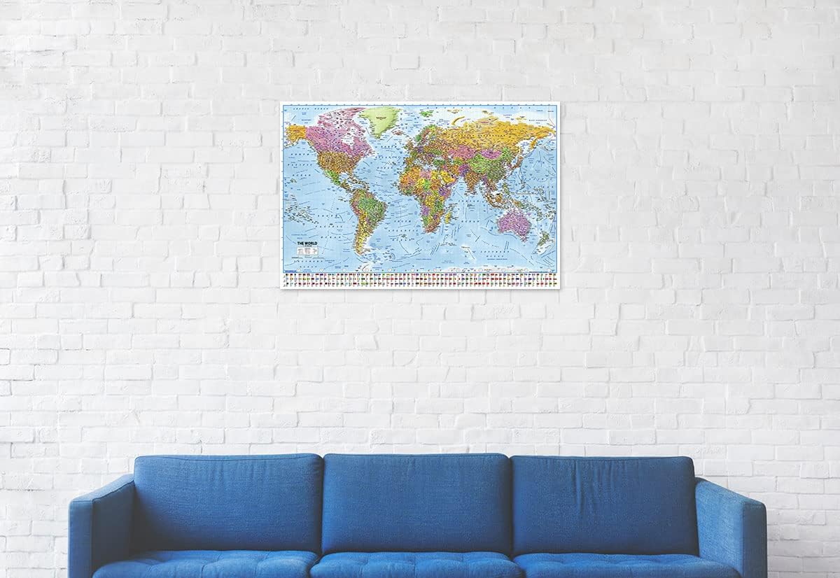 Poster Detaild modern political World Map with country flags MAPS IN MINUTES Poster Size: 36" x 24" Poster Material: Paper
