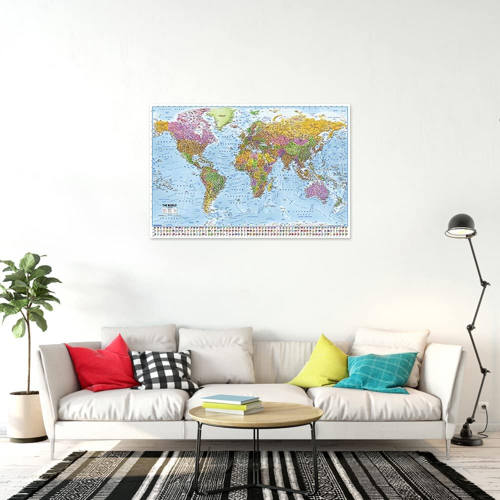 Poster Detaild modern political World Map with country flags MAPS IN MINUTES Poster Size: 36" x 24" Poster Material: Paper