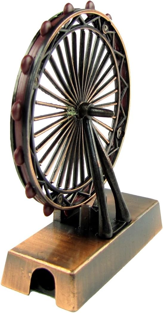 Perfect, fully functional showpiece that has a hidden pencil sharpener on the side, makes a great piece to add to a pencil sharpener and toy collection Add some great old classic decor to your desk, den, or at work with this Collectible Die Cast Miniature Ferris Wheel Replica Miniature Ferris Wheel Pencil Sharpener measures 1 1/4" long, 3" wide, and 3 5/8" tall, with a movable spinning wheel Bronze Metal Die Cast Miniature Ferris Wheel Novelty Collectible ships brand new with our 100% customer satisfaction guarantee The Ferris Wheel Replica is perfect for those who love fair and amusement park classics