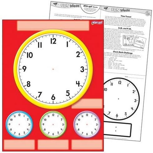 1 large and 3 small analog clock faces on this dry-erase chart help students practice time skills. Handy size can be easily viewed from a distance. Useful in large rooms and with small groups. Extra Value: reproducible activities on chart back. Durable cardstock. 17" x 22". Stores easily in chart- or bulletin board-size File ’n Save Box.