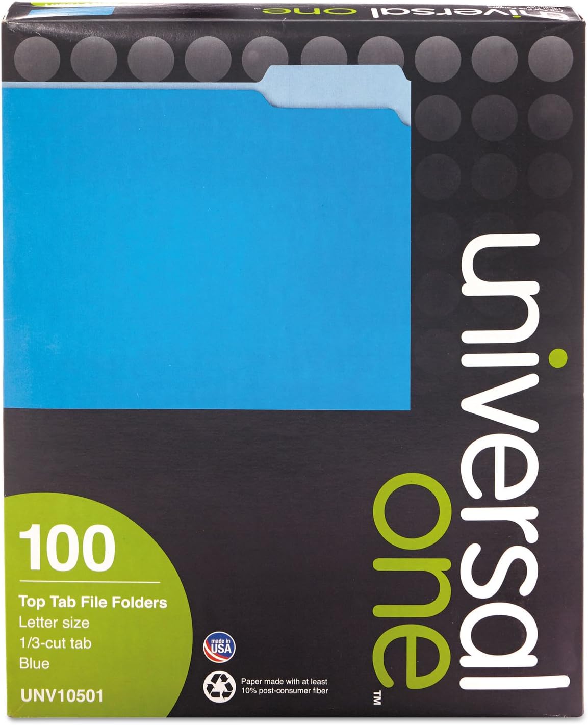 Sold as 100/Box. High-quality 11 pt. stock resists tearing. Bottom triple-scored for 3/4", no-sag expansion. Blue. Undercut at tab for increased indexing area. Minimum 10% post-consumer material. Letter-size.