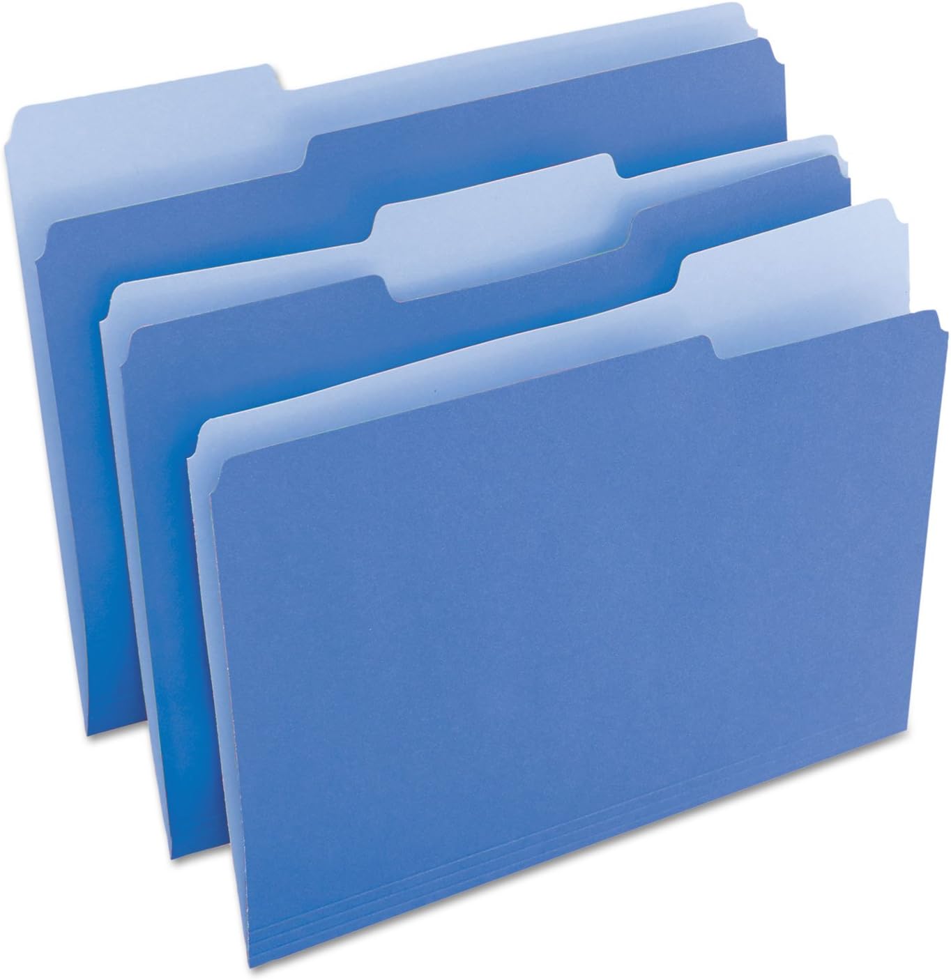 Bright color–great for color-coding and preventing misfiles. Constructed of high-quality 11 pt. stock to resist tearing. Bottom is triple-scored for 3/4", no-sag expansion. Undercut at tabs. File Folder Type: Top Tab; Size: Letter; Folder Material: 11 pt. Stock; Color(s): Blue/Light Blue.