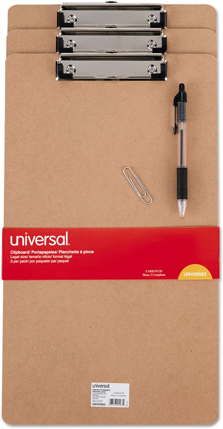 Sold as 3/Pack. Strong clip with rubber grips holds paper securely. Retractable hanging hole. 8 1/2" x 14". An earth-friendly choice that works for your office and the environment.