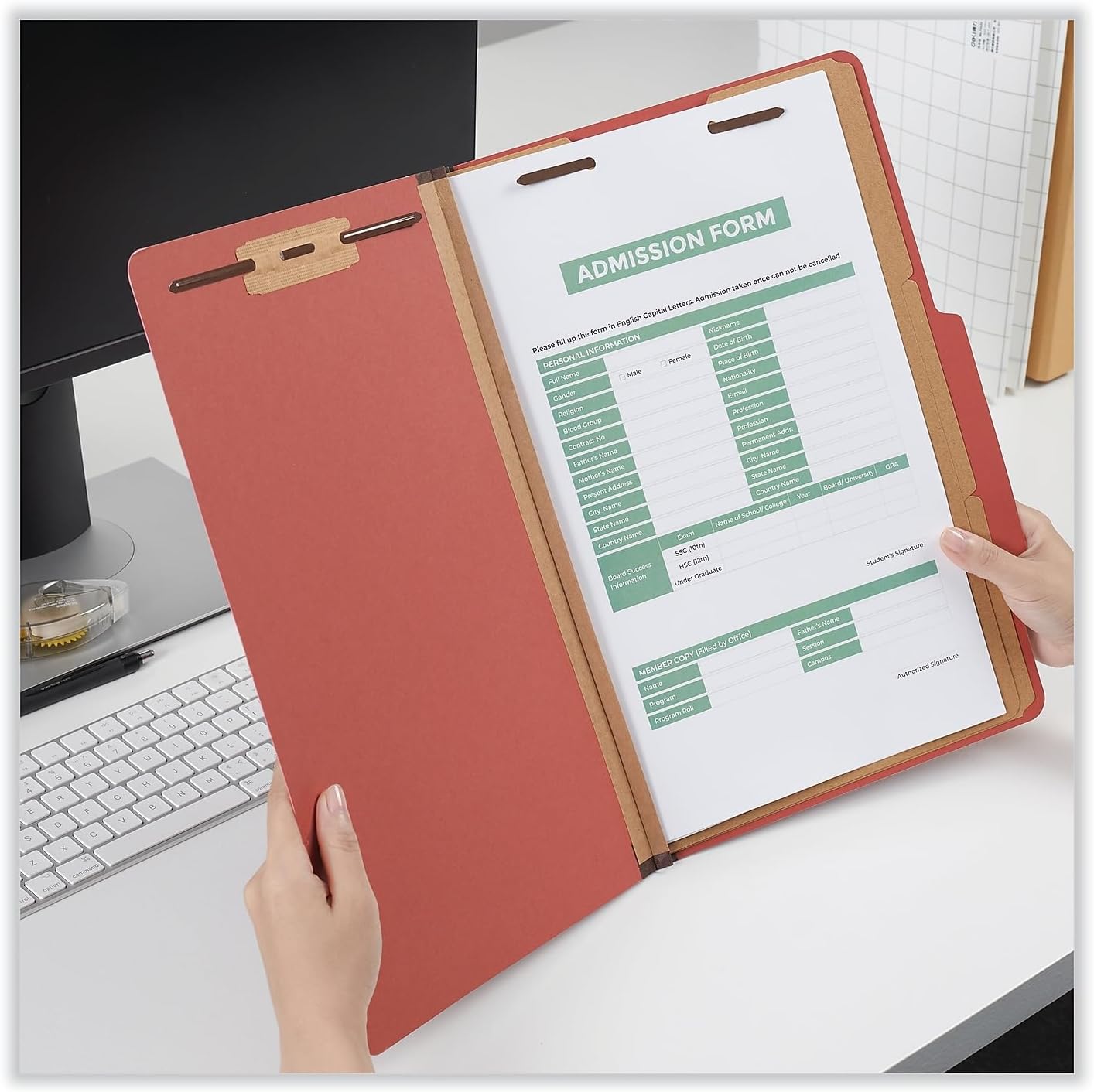 Protect your paperwork with moisture-resistant classification folders. The multiple fasteners and dividers allow you to create subcategories for home or office filing. Customized filing allows you to simply sort and seek paperwork by subject or document type. 2/5-cut tabs with dividers provide space for labeling and easy file identification. Folders are built with heavyweight paper construction to withstand repeated use.