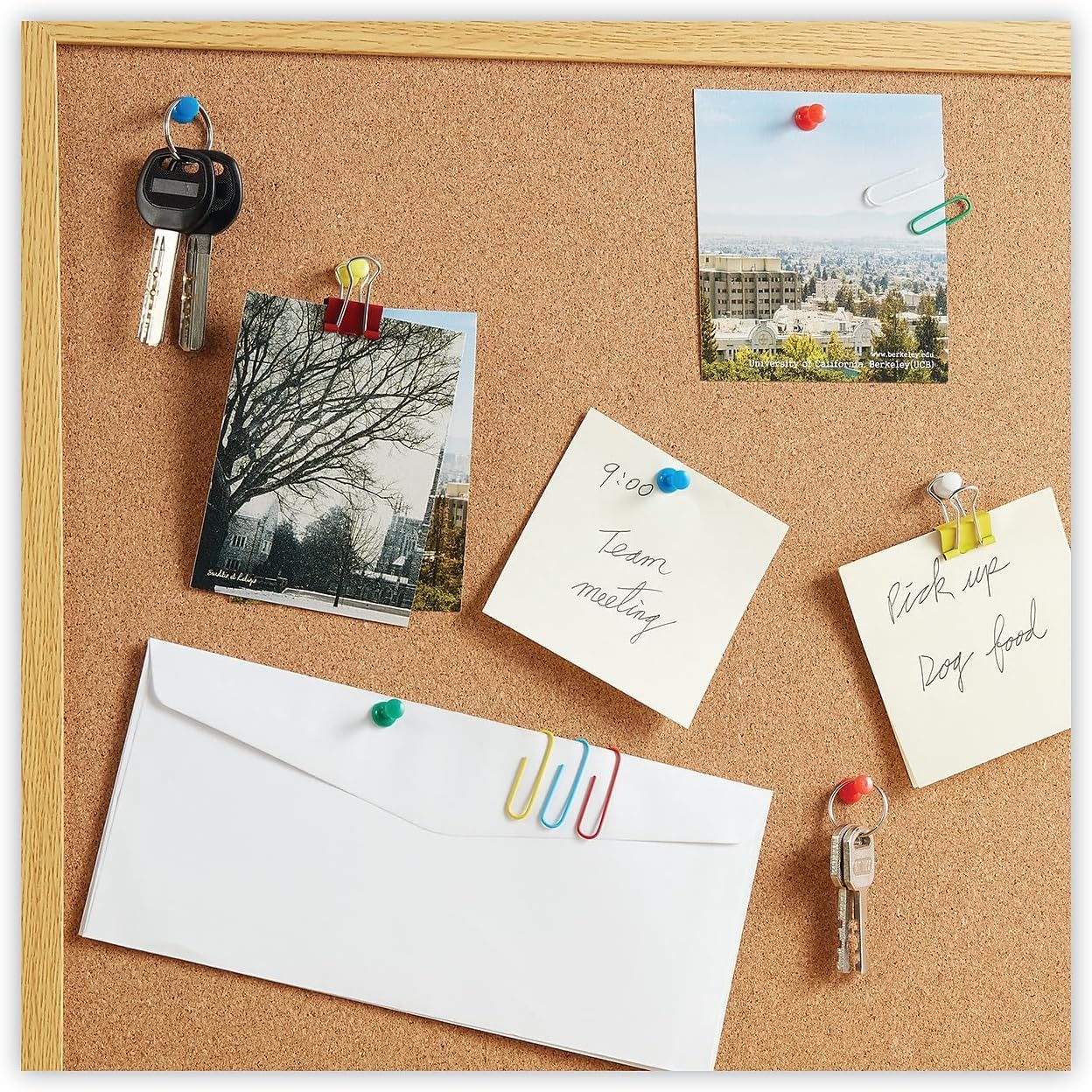A convenient combination pack of paper clips, binder clips and push pins help you keep papers organized. Includes 46 binder clips, 280 push pins and 380 plastic-coated paper clips. Each comes in its own handy dispenser.