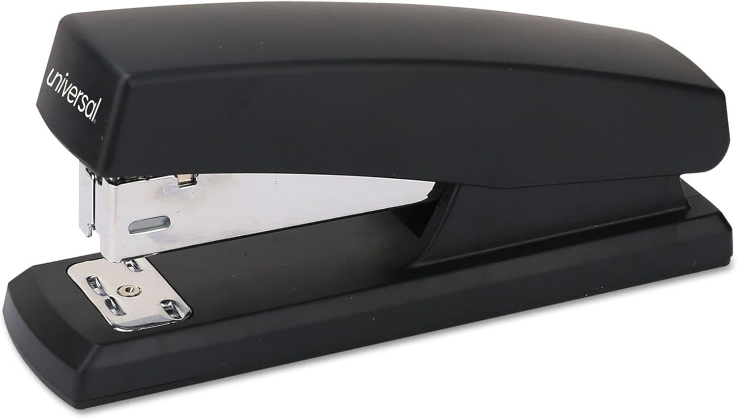 Desktop stapler delivers dependability and performance at an affordable price. Catch release allows you to open it flat for bulletin board tacking. High-impact plastic construction provides excellent durability, and a nonskid base helps ensure stable operation while protecting your work surface. Holds a half strip of standard staples.
