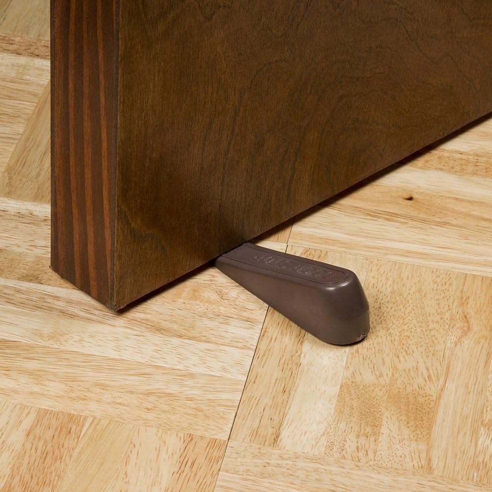 Made of Vinyl for long lasting strength and durablility Wanut Clolr Keeps doors open Doorstops can be used on wood, carpet, and linoluem Slide the doorstop under any door