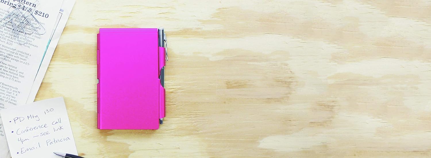 Flip notes are handy for a quick note. You will never lose the pen because it holds the spring loaded flip note together. Slim and lightweight, these fit easily into a purse or pocket. Anodized aluminum protects the pad from bent edges. Each notepad contains 50 sheets of paper. Wonderful gifts for stocking Stuffers, teachers, hostesses, and any occasion where a small gift is appropriate. Refill pads and replacement pens are available.