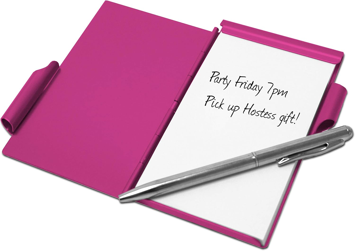 Flip notes are handy for a quick note Perfect desk accessory 50 blank sheets of perforated paper Fits in a pocket, purse or glovebox Includes pen that holds the spring-loaded case closed