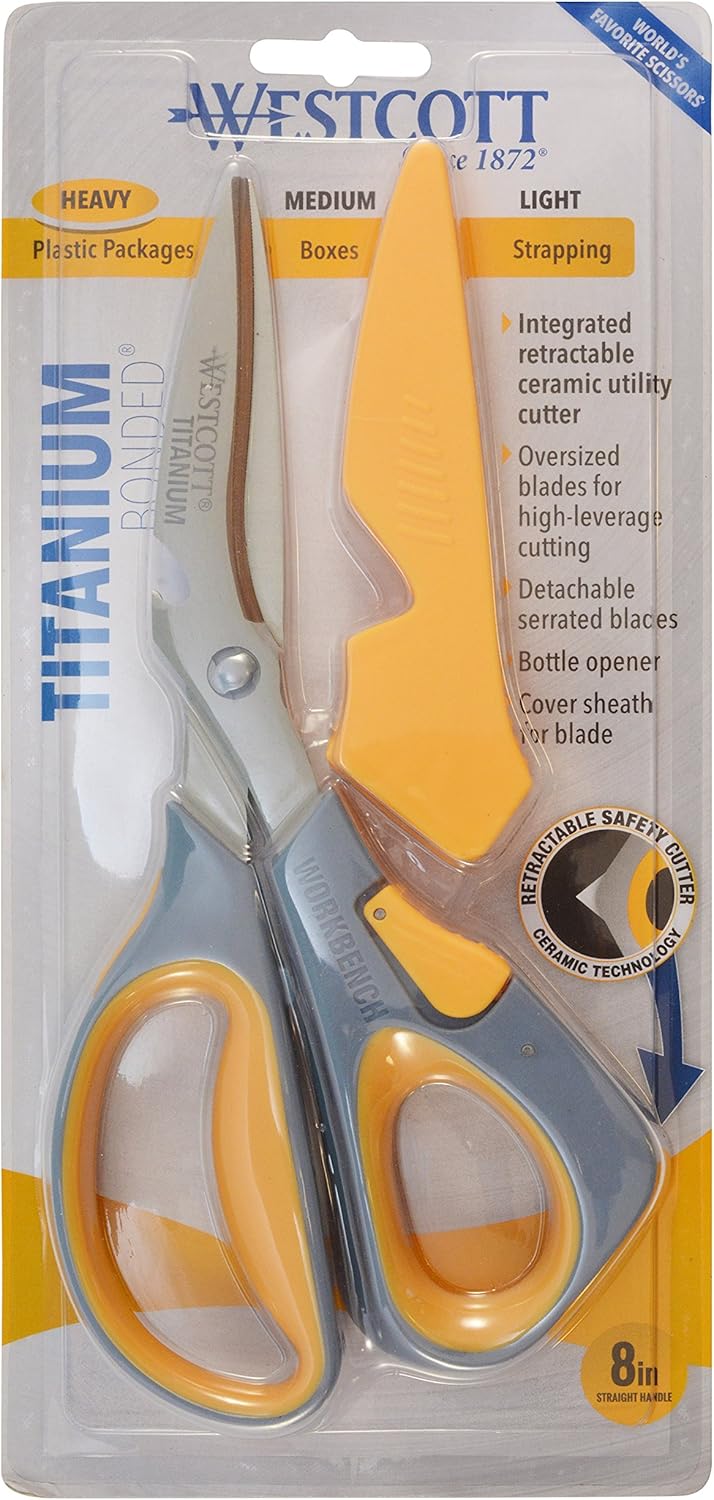 Westcott Titanium workbench Shears with sheath and ceramic cutter, 8-inches (16512) great for home, office, or kitchen.