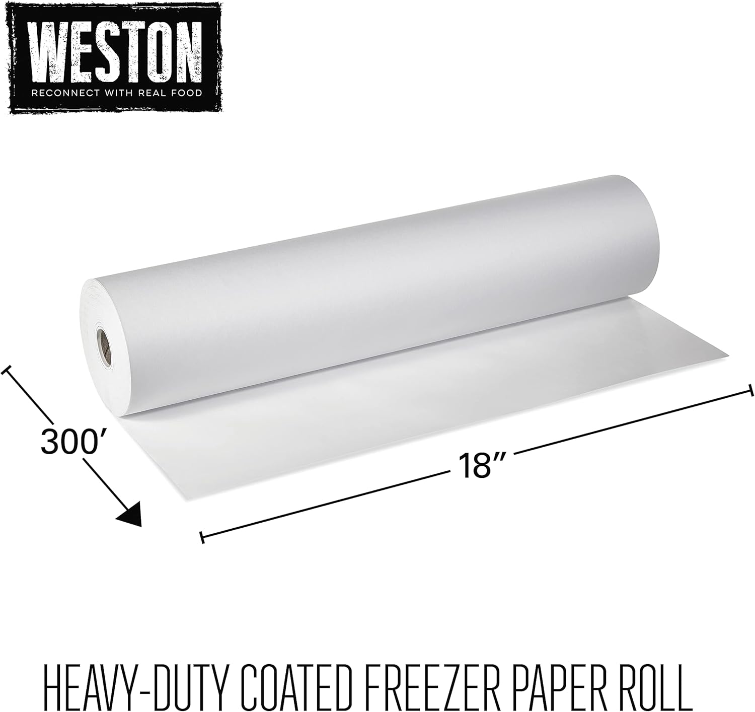 Dispense and cut freezer paper all in one package with the Weston® Heavy-Duty Coated Freezer Paper with Cutter Box. The heavy-duty 50/15 freezer paper seals in freshness and flavor, and it prevents freezer burn and leaks. Large 18" x 300’ roll.