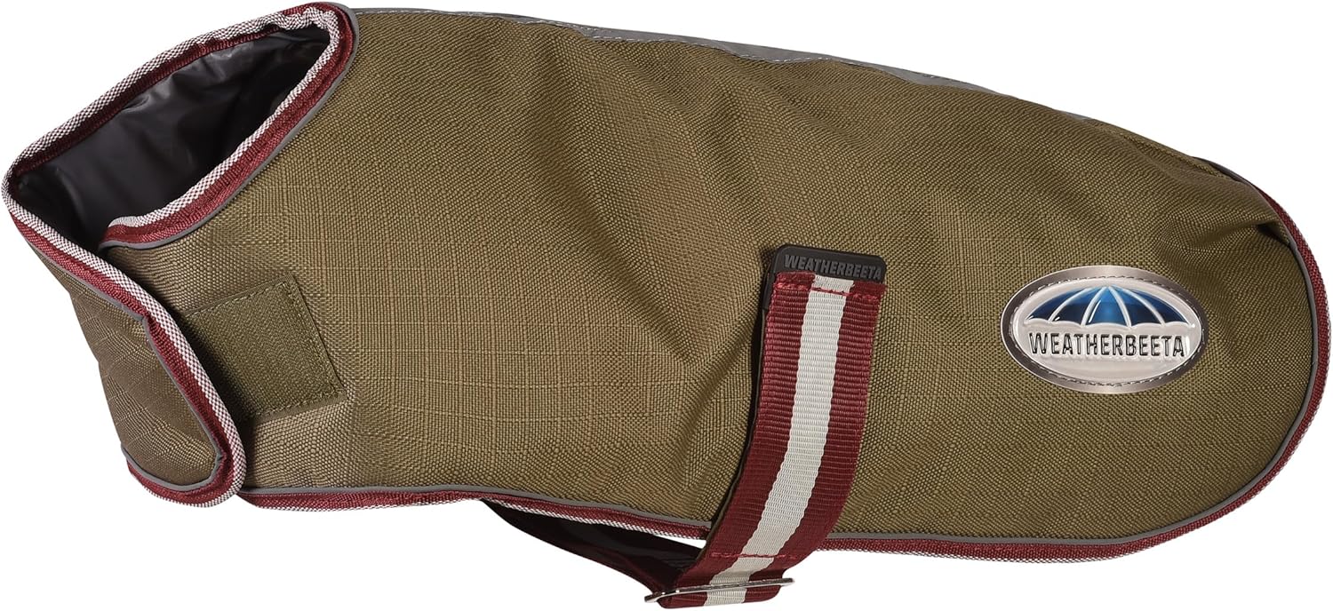 WeatherBeeta ComFiTec Premier Free Parka Dog Coat Medium, Olive Green/Burgundy/White, 26