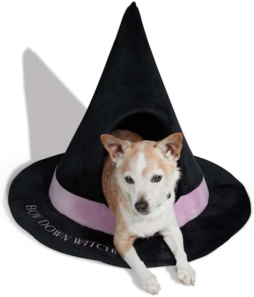 Medium Size: Fits medium breed cats Comfortable: Soft polyester material Fun Design: Witch hat pattern Easy Assembly: Sturdy stick frame Durable: Machine washable polyester fabric
