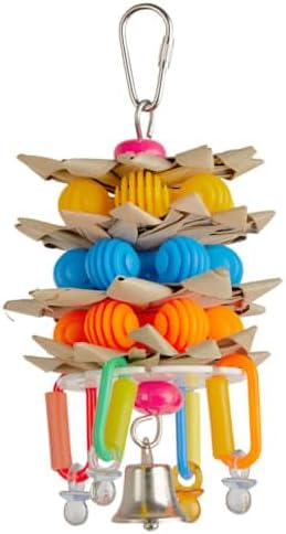 Stars of Palm Chewing Bird Toy from You & Me Helps relieve bordom for cockatiels, green cheek conures, sun conures, and similar-sized birds Brings entertainment to their habitat with bamboo, colorful plastic charms, and sounds to let the good times fly Provides stimulation as birds instinctually seek to gnaw and chomp Includes a link connector for easy installment
