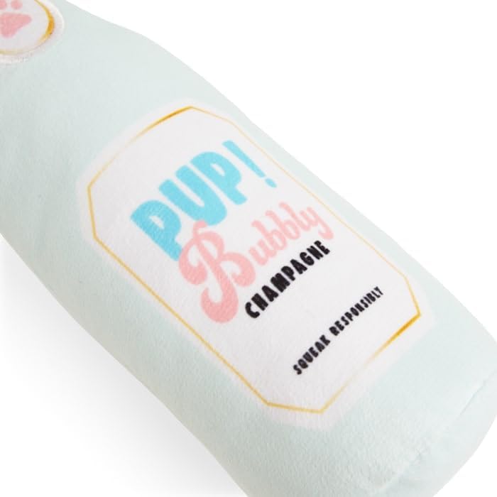 Birthday Bubbly Plush Dog Toy from Youly 12-inch size Crinkle and squeaker Champagne design