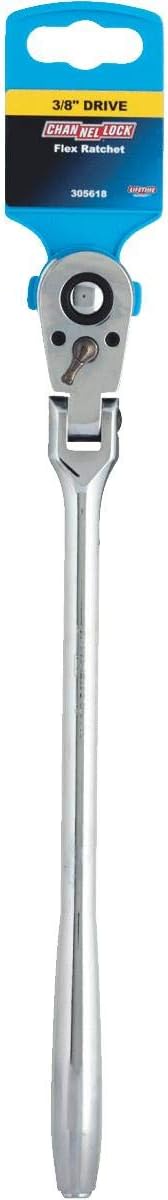 Flex head ratchet offers more torque with a full handle length. Flex head tilts 180 deg (degree) at any interval with continuous head tension. 72 teeth, 5 deg space requirement for each turn. Reversible switch enables ratchet handle to move from either direction. Chrome vanadium steel. Meets or exceeds ANSI (American National Standards Institute) specifications. Lifetime warranty.