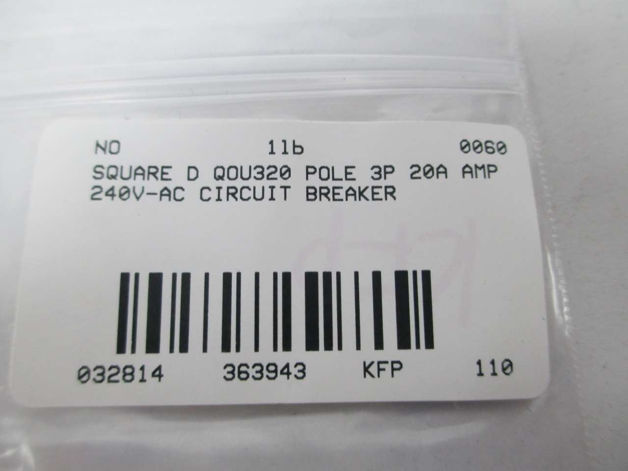 Miniature Circuit Breaker, Amps 20, AC Voltage Rating 120/240V AC, Circuit Breaker Type Standard, Number of Poles 3, DC Voltage Rating 48V DC, Circuit Breaker Actuator Toggle, Circuit Breaker Mounting Style Surface/DIN Rail, Compatible Panelboard/Load Center Series QO, Phase 3, Series QOU, Max. AIR Rating 10kA at 120/240V AC, For Use With Air Conditioning and Refrigeration Equipment, Heating, Terminal Connection Slotted Box Lug (Reversible Line and Load), Frame Size 100A/QOU, Length 4.05 in