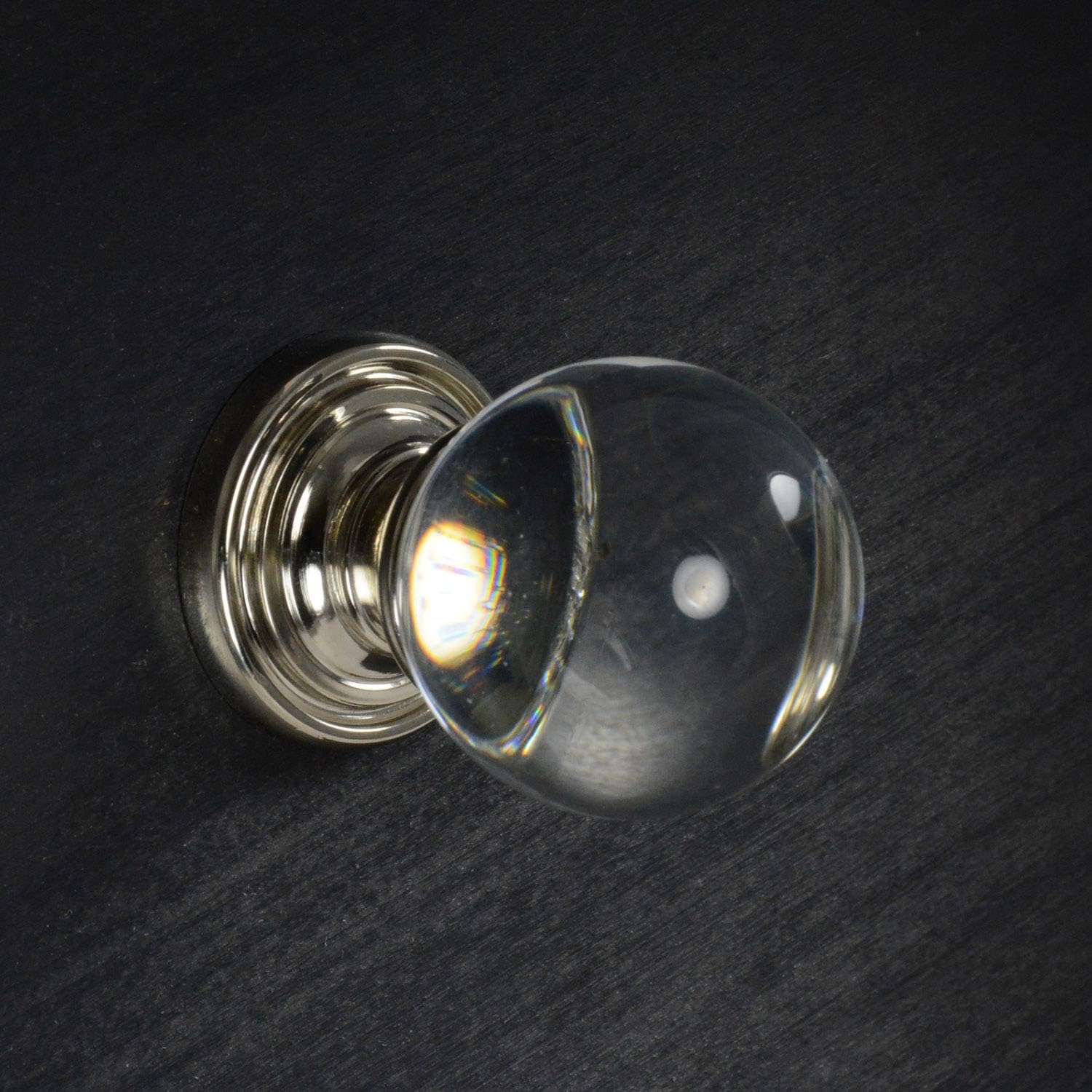 Diameter: 1-1/4 in. (32mm) Projection: 1-11/16 in. (43mm) Material: Glass/Metal Style: Transitional