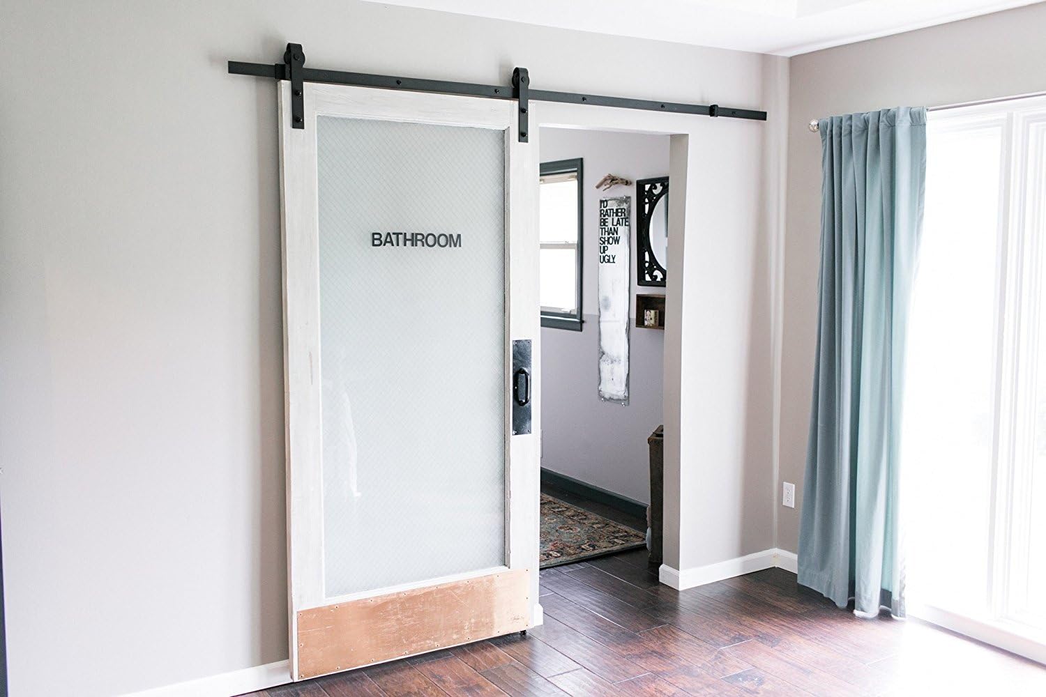 Sliding door saves a lot of opening space unlike folding or swing doors and the vintage industrial barn style brings a another highlight to your home. The J-shape roller is basic yet classic. It is 11 1/2’’(292mm) long, 1 4/7’’(40mm) wide. The strap is 2/9’’(6mm) thick. Two rollers can hold a door of 200lb(100kg) weight and of 1 7/9’’(45mm) thickness. This hardware kit is made of high quality steel with powder coating finish, which is the latest trend. Vivid installation manual is included in the package and 7/24 customer service is always online if you have any trouble installing the hardware. Door not included. Assembly Required Package Contains: 11525mm Track; 2Roller; 4Wall spacer; 2Stopper; 2Anti-jump pad; 1*Floor guide.