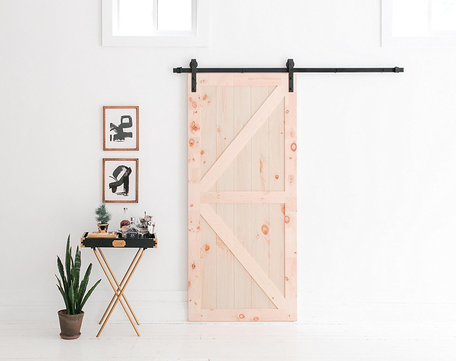 J-Shape Basic Sliding Barn Door Hardware Kit Single Door 5FT-Track Package Contains: 11525mm Track; 2Roller; 4Wall spacer; 2Stopper; 2Anti-jump pad; 1Floor guide.